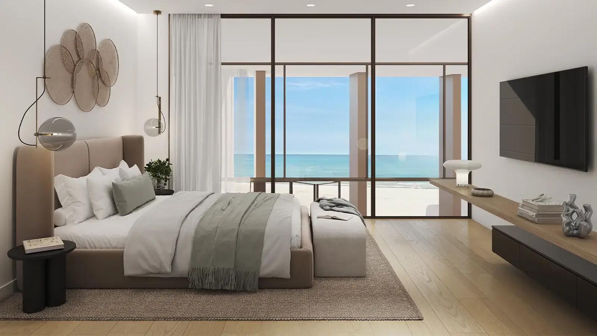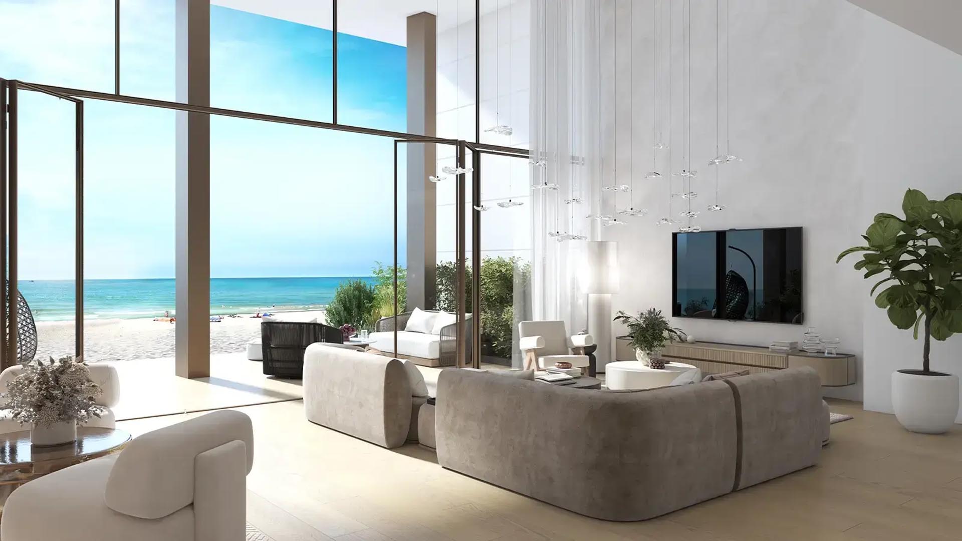The development offers spacious one-bedroom, two-bedroom, and larger luxury apartments, all designed with contemporary architecture, open-plan living spaces, and floor-to-ceiling windows that provide breathtaking panoramic views of the Arabian Gulf. Each residence includes high-end finishes, modern kitchens, expansive terraces, and carefully designed interiors that reflect a sophisticated beachfront lifestyle. Many units benefit from direct beach access, allowing residents to enjoy the tranquillity and exclusivity of private coastal living.